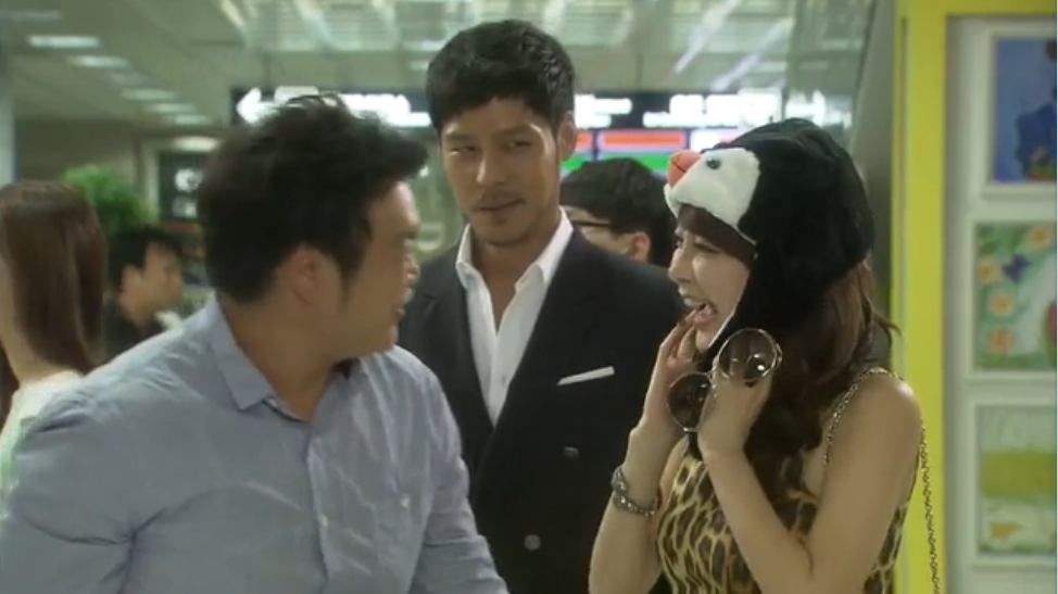 Tam Hee picks Penguin up at the airport. Aww, he even brought her a penguin hat! He tells her that if they build a hotel at the south pole, there'll be no competition, since it's all penguins. (Which means you'll have no business either, you dolt!) Tam Hee congratulates him on being just as considerate as his father. Which is when Joon Hyuk comes up all friendly-like, and offers him coffee.